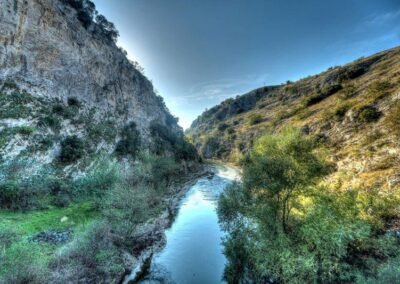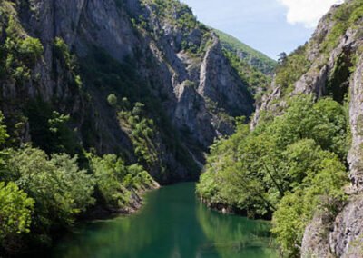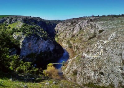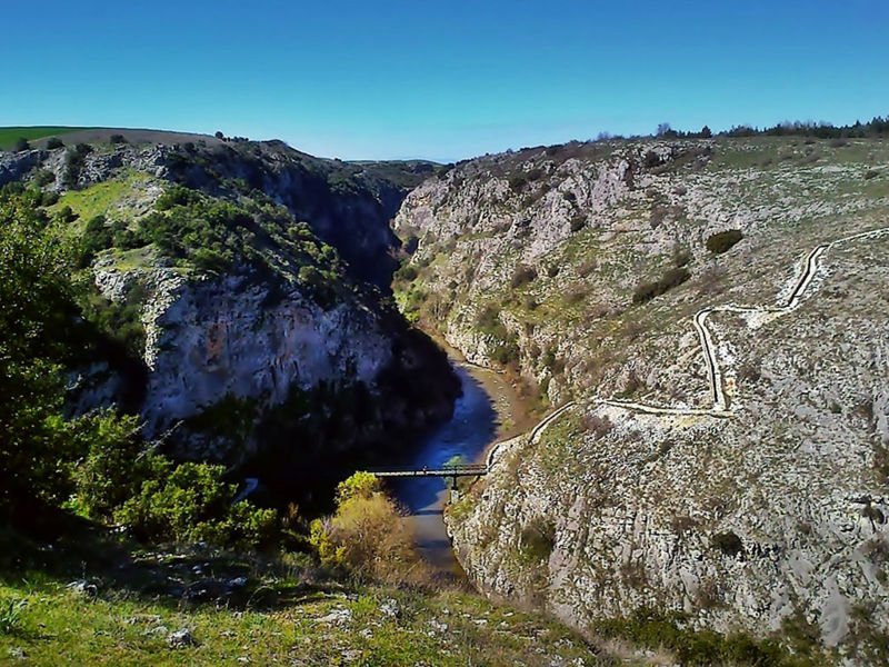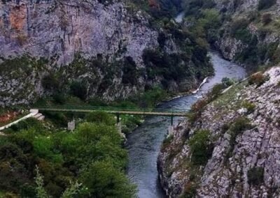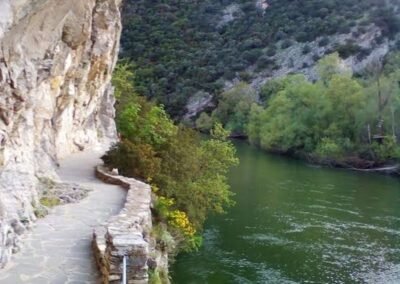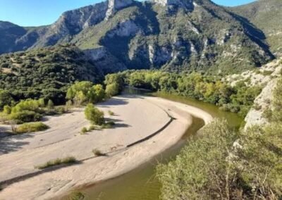 Die Angitis-Schlucht mit dem bekannten Maaras-Höhlensystem bietet eine einmalige Kombination aus Felslandschaften und dem klaren Wasser des Flusses. Der Wanderweg führt entlang des Ufers durch grüne Vegetation, vorbei an beeindruckenden Felsformationen. Diese leichte bis mittelschwere Route ist ideal, um Natur und Abenteuer in Nordgriechenland zu verbinden.