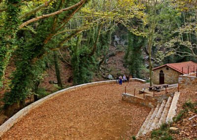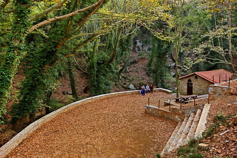 Die Quelle von Agia Varvara bei Drama ist ein idyllischer Ort mit einem kleinen Wasserfall inmitten üppiger Natur. Ein kurzer Spaziergang führt oberhalb des Wasserfalls zu einer alten Steinbrücke und einer kleinen Kapelle – ein perfektes Ziel für alle, die eine leichte und stimmungsvolle Wanderung in ruhiger Umgebung genießen möchten.